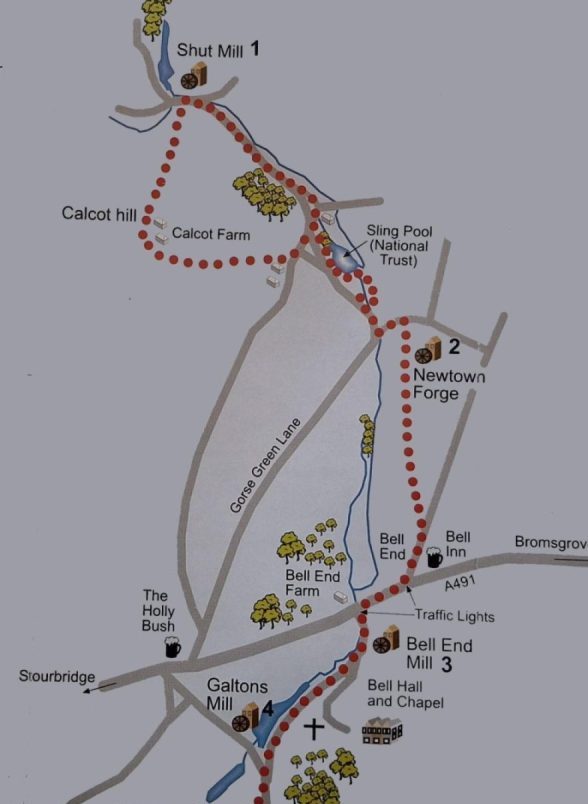 A mill on this site was occupied by J. Savage in the 16th century and known as Savage’s Mill. It was used for corn grinding. During the Napoleonic wars it was used for gun barrel grinding for Farmer & Galton, the Birmingham firm of gun makers and became known as Galton’s Mill. Isaac Nash took it over in 1846 and it was used for scythe grinding until it closed in 1942. The building still exists and contains a cast iron mill wheel (not accessible), possibly one of the earliest survivng iron wheels in the Midlands.